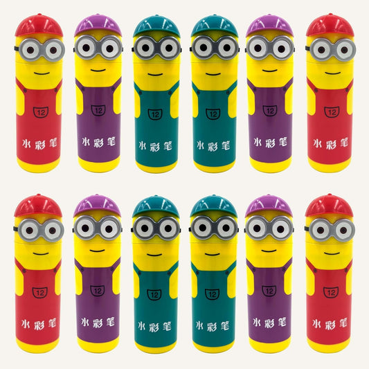 Minions Cartoon Character Sketch Pens Box, 12 Colored Pens for Kids