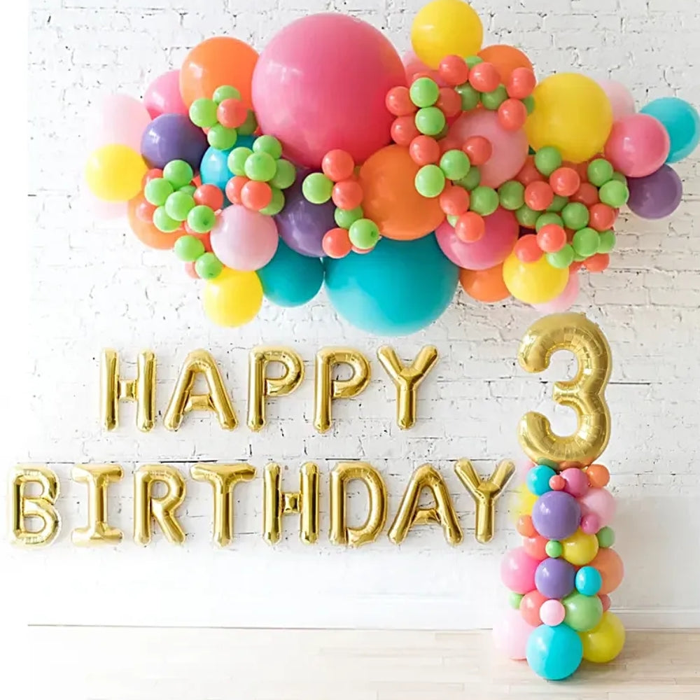 - Happy Birthday Foil Balloon Set Golden Color